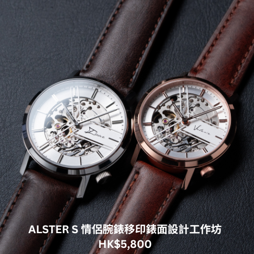 The Workshop includes a pair of ALSTER S Watches (1x 38.5mm & 1 x 35mm), 2 premium European leather straps (any straps within HK$300) , 2 refined watch bag and two-year warranty.